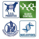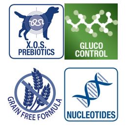 Atún, fécula de patata, aceite de pescado (aceite de salmón 2%), productos de levadura (1%, hidrolizado de los cuales nucleótidos libres 44%), minerales, xilo-oligosacáridos (XOS 0,4%), semilla de Plantago (0,2%). Fuente de carbohidratos: almidón de patata.